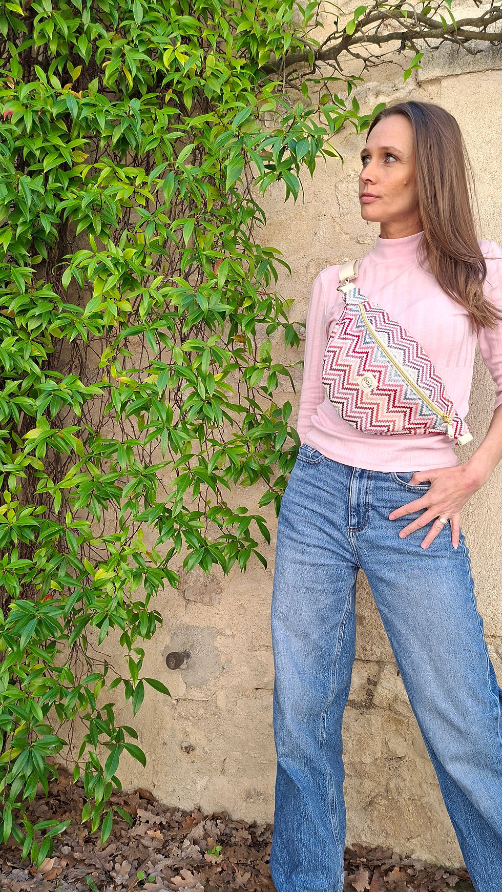 BANANE VELOURS COTELES FRAMBOISE - détails dorés