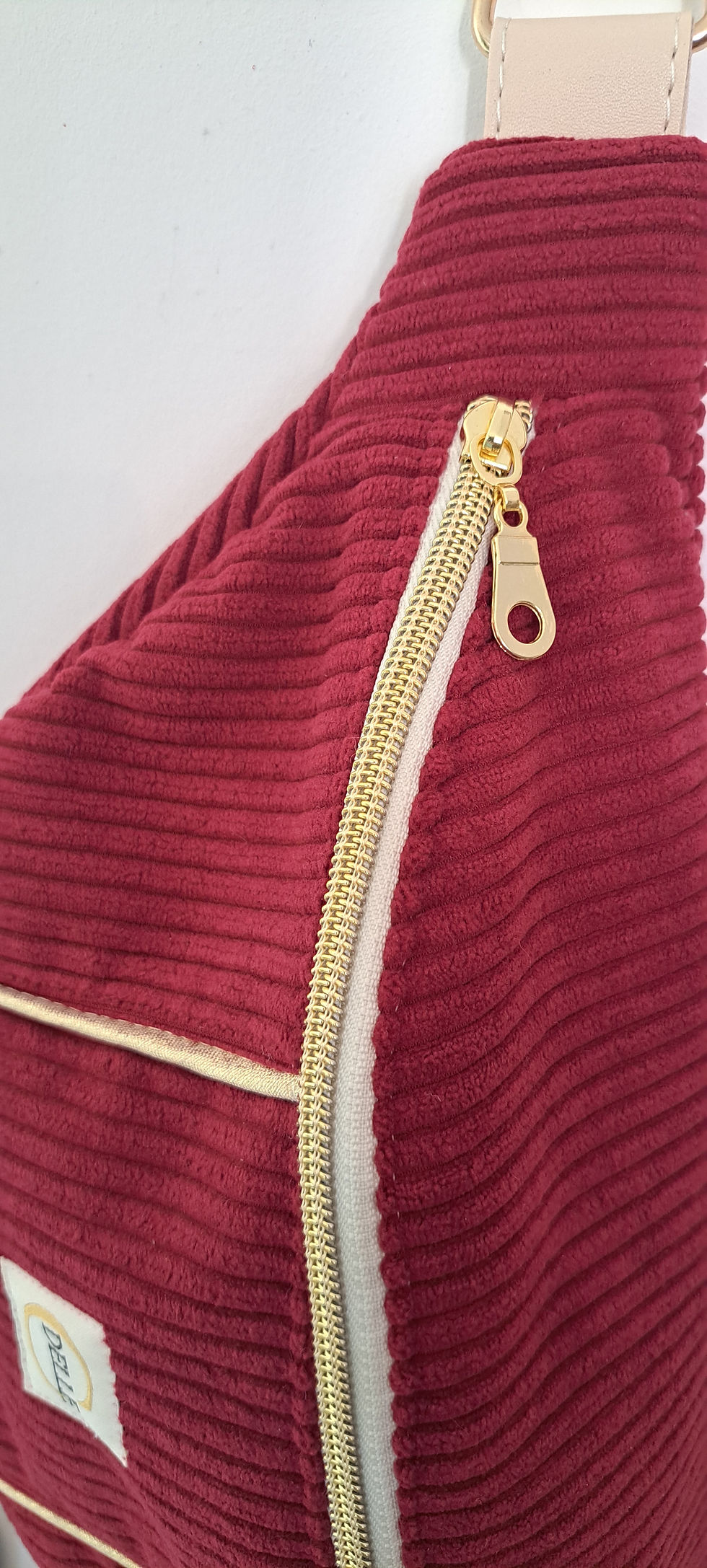 BANANE VELOURS COTELES BEIGE - détails dorés